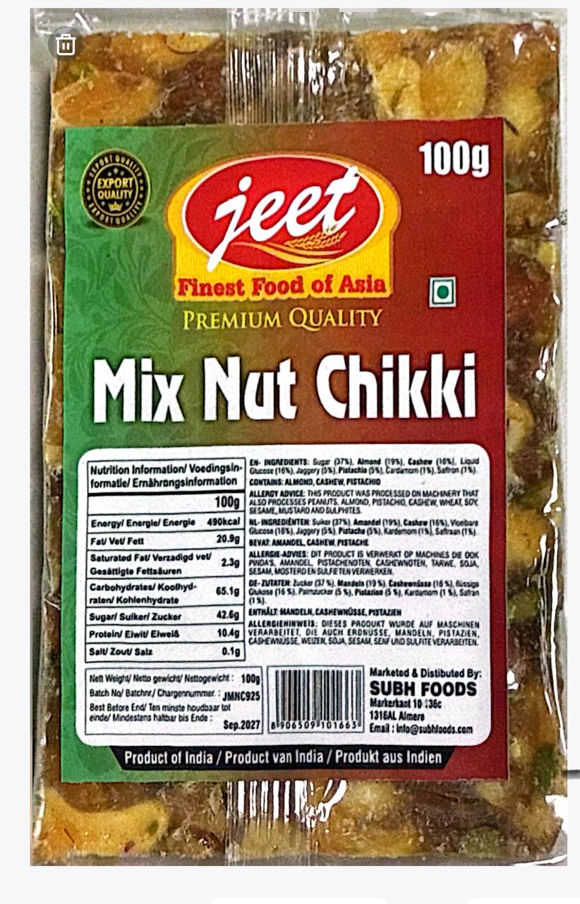 Enjoy the perfect balance of taste and nutrition with Jeet Mix Nut Chikki—a classic nutty delight!